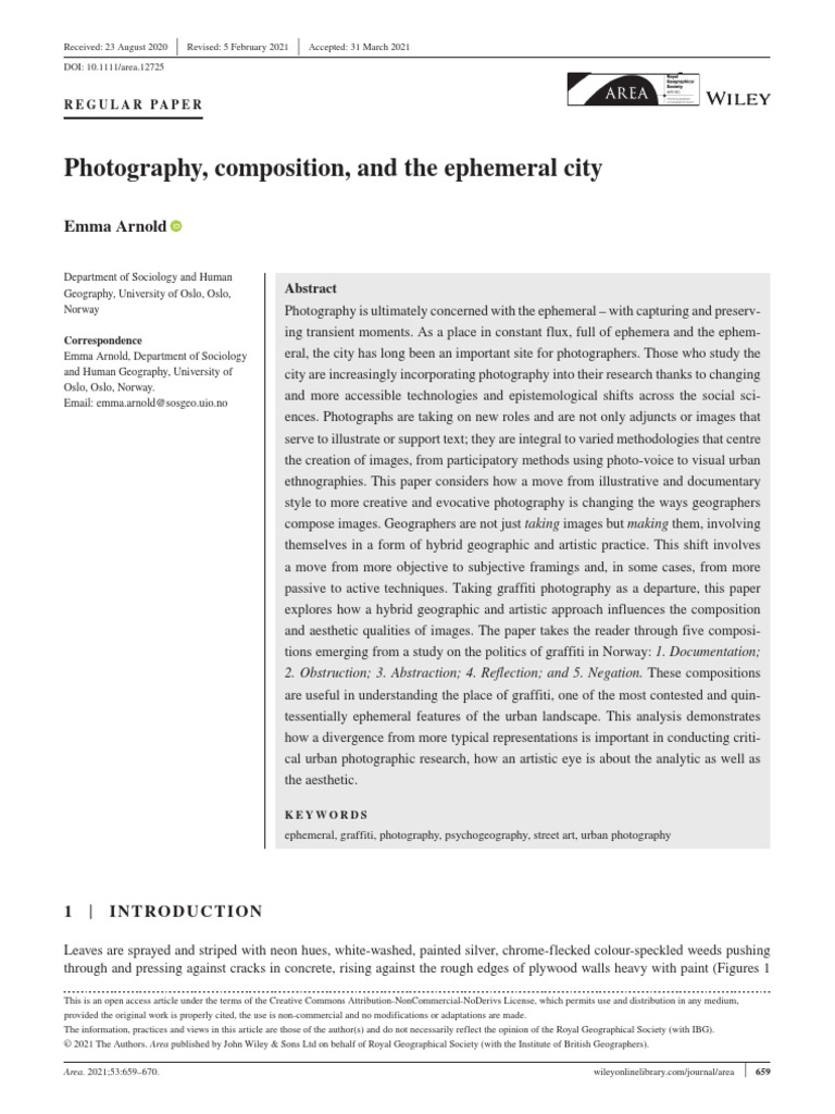 How to cite this article: Arnold, E. (2021) Photography, composition, and the ephemeral city. Area, 53, 659–670.
