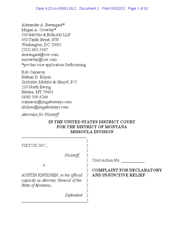 30/47792; see also David McCabe, A Plan to Ban TikTok in Montana Is a Preview