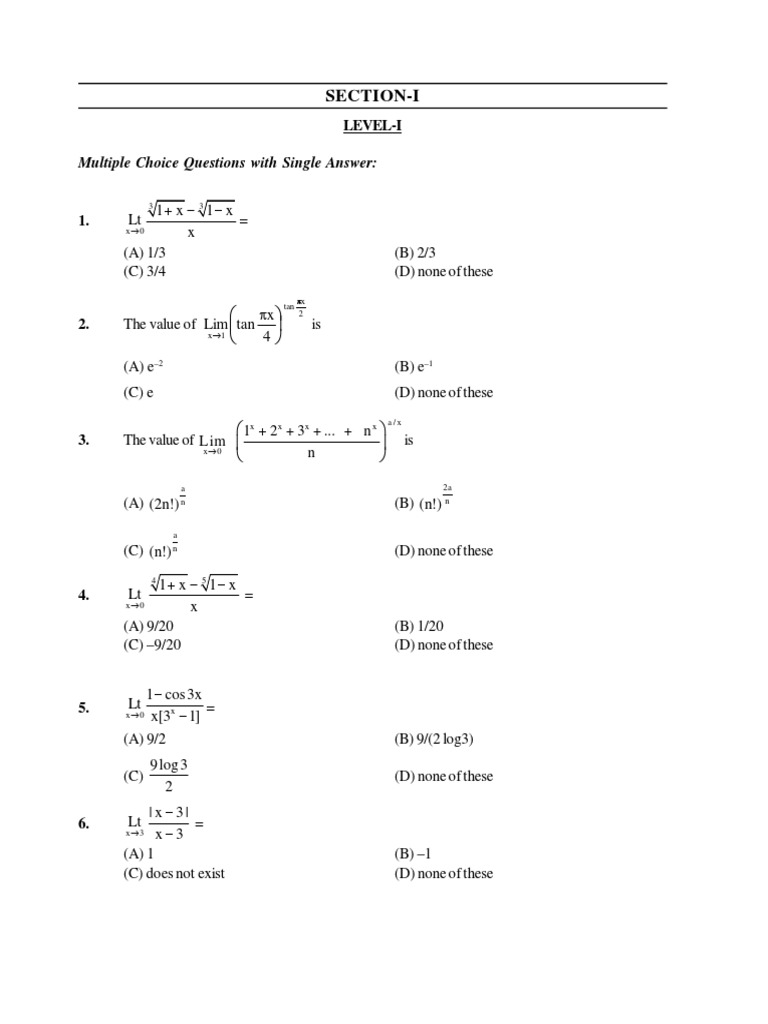 5. (i) 1 (ii) does not exist 6. (i) continuous (ii) discontinuous