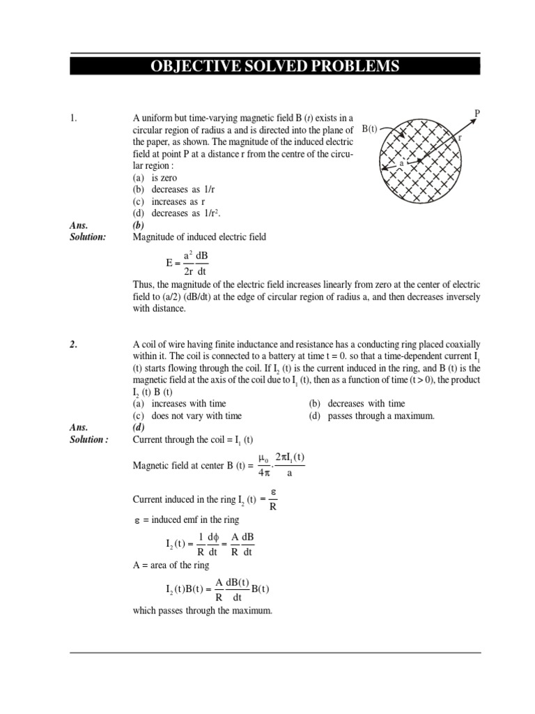 1. A uniform but time-varying magnetic field B (t) exists in a P