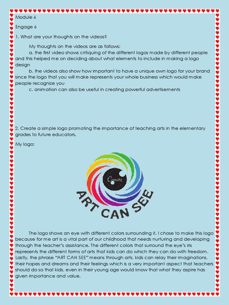 2. Create a simple logo promoting the importance of teaching arts in the elementary