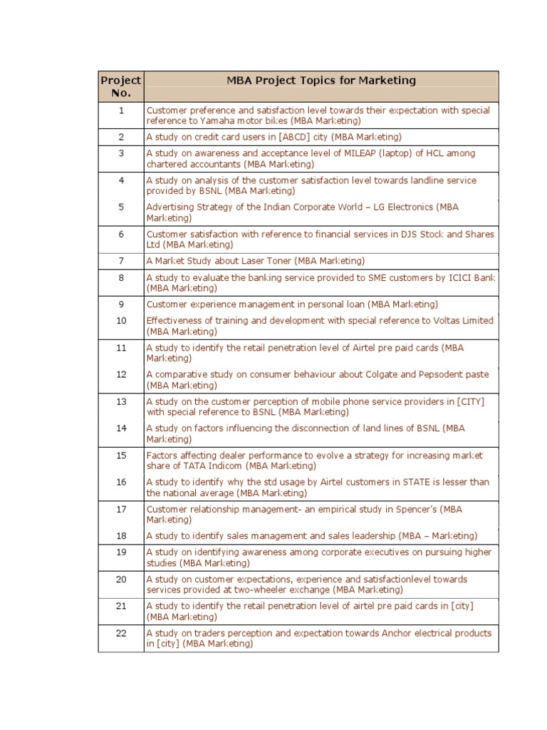 Project MBA Project Topics for Marketing