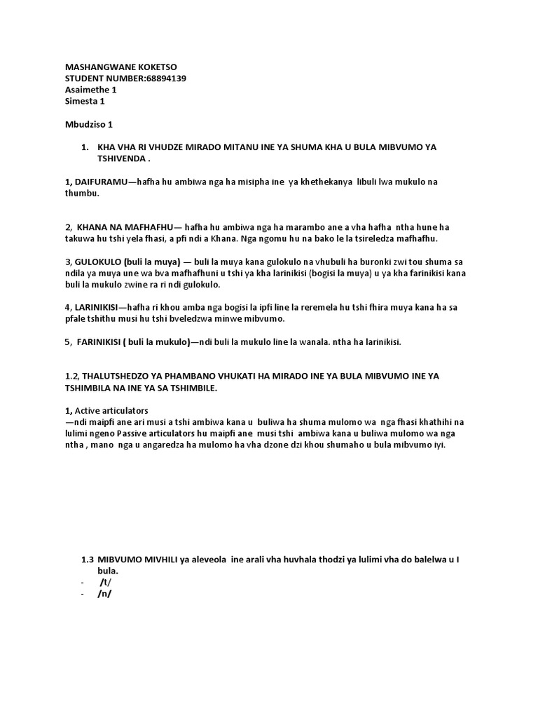1.3 MIBVUMO MIVHILI ya aleveola ine arali vha huvhala thodzi ya lulimi vha do balelwa u I