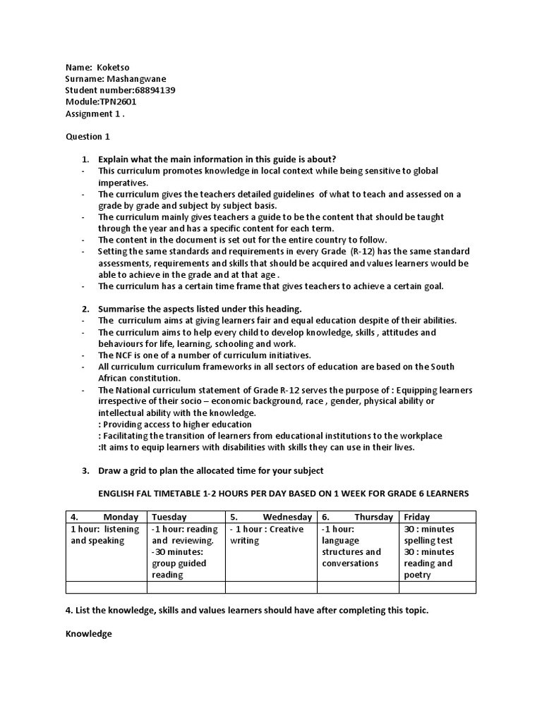 -The CAPS documents gives teachers detailed guidelines of what to teach and assessed on a grade by