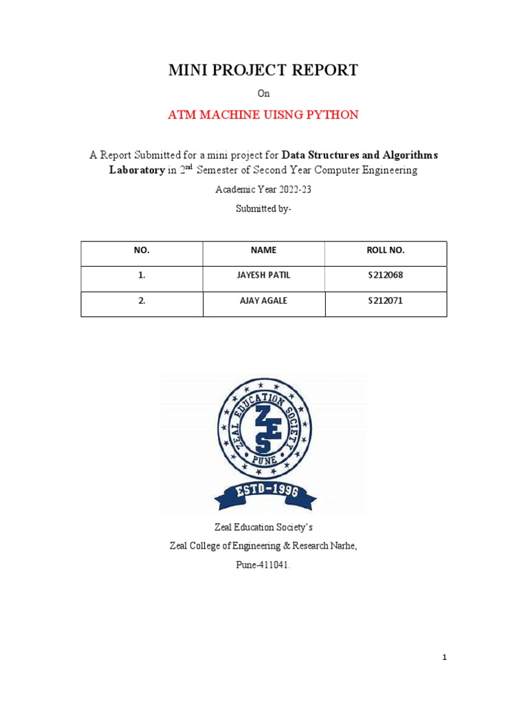 A Report Submitted for a mini project for Data Structures and Algorithms