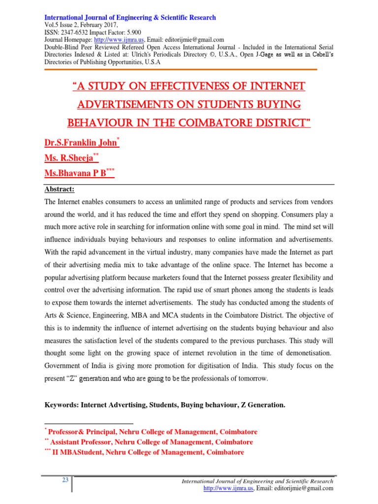 Online advertising and its impact on consumer buying behaviour. IJRFM Volume 3,