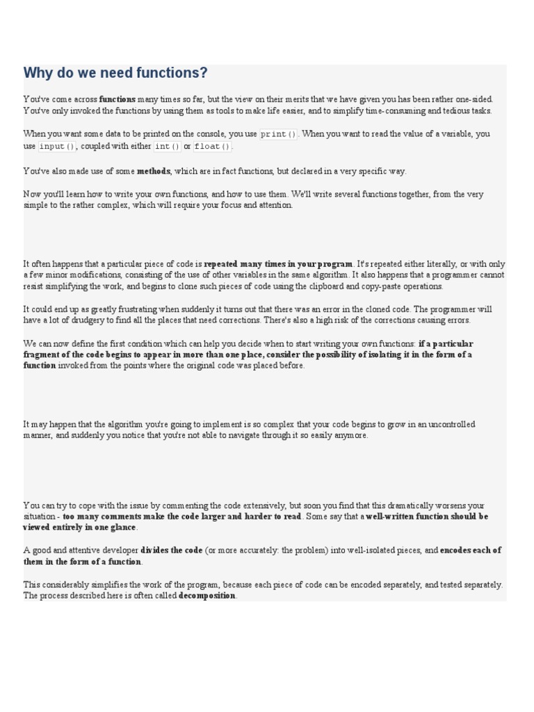 You've come across functions many times so far, but the view on their merits that we have given you has been rather one-sided.