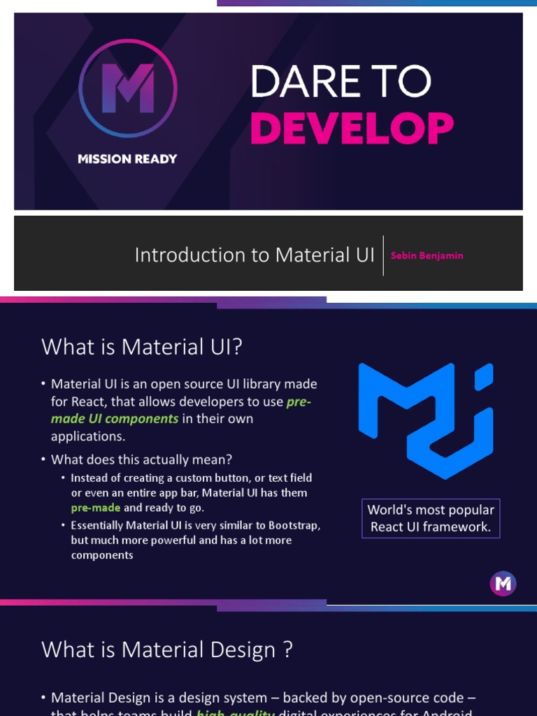• Essentially Material UI is very similar to Bootstrap, React UI framework.