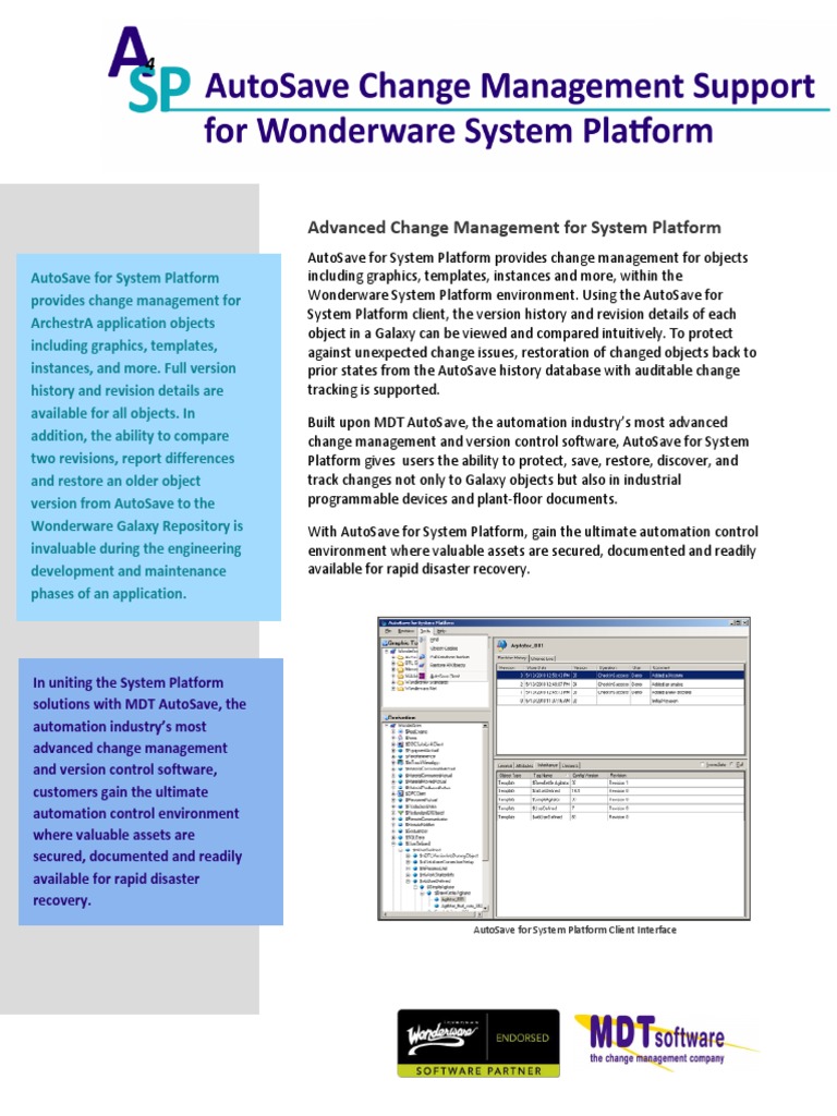 AutoSave compliments Wonderware System Platform with unparalleled change management that lowers