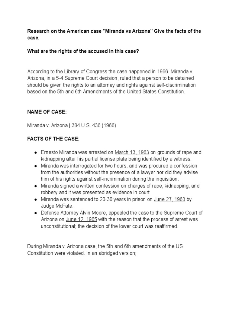Research on the American case "Miranda vs Arizona" Give the facts of the