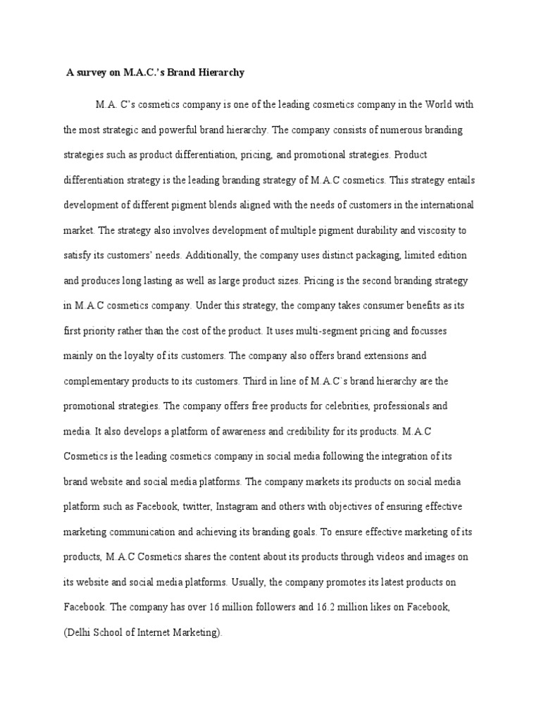 M.A.C Cosmetics consists of very strategic branding strategic and hierarchy that has greatly