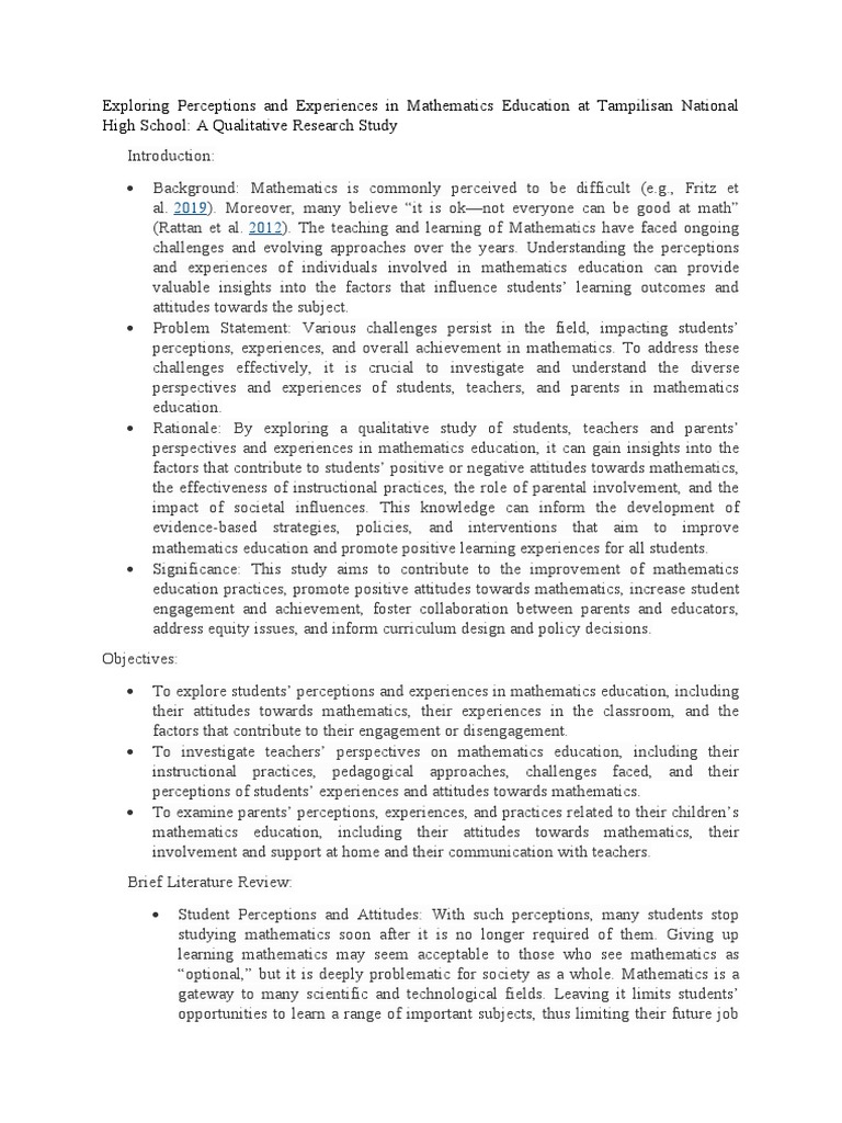 perceptions, experiences, and overall achievement in mathematics. To address these