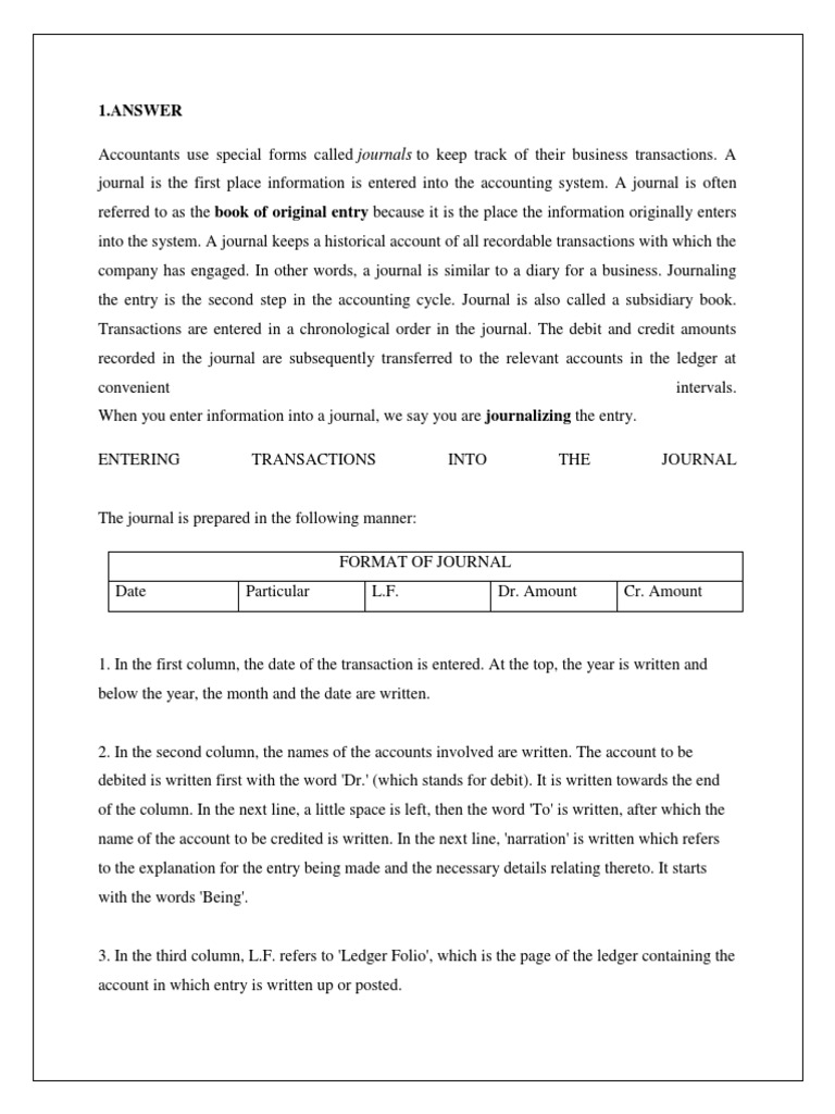 recorded in the journal are subsequently transferred to the relevant accounts in the ledger at