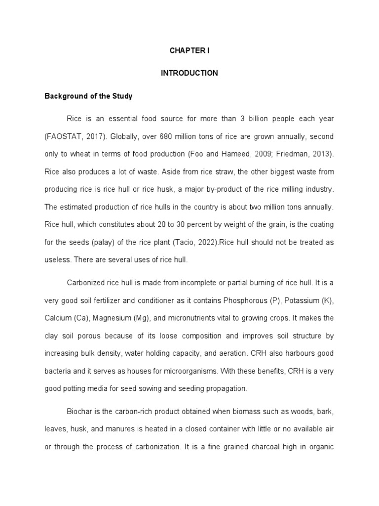for the seeds (palay) of the rice plant (Tacio, 2022).Rice hull should not be treated as