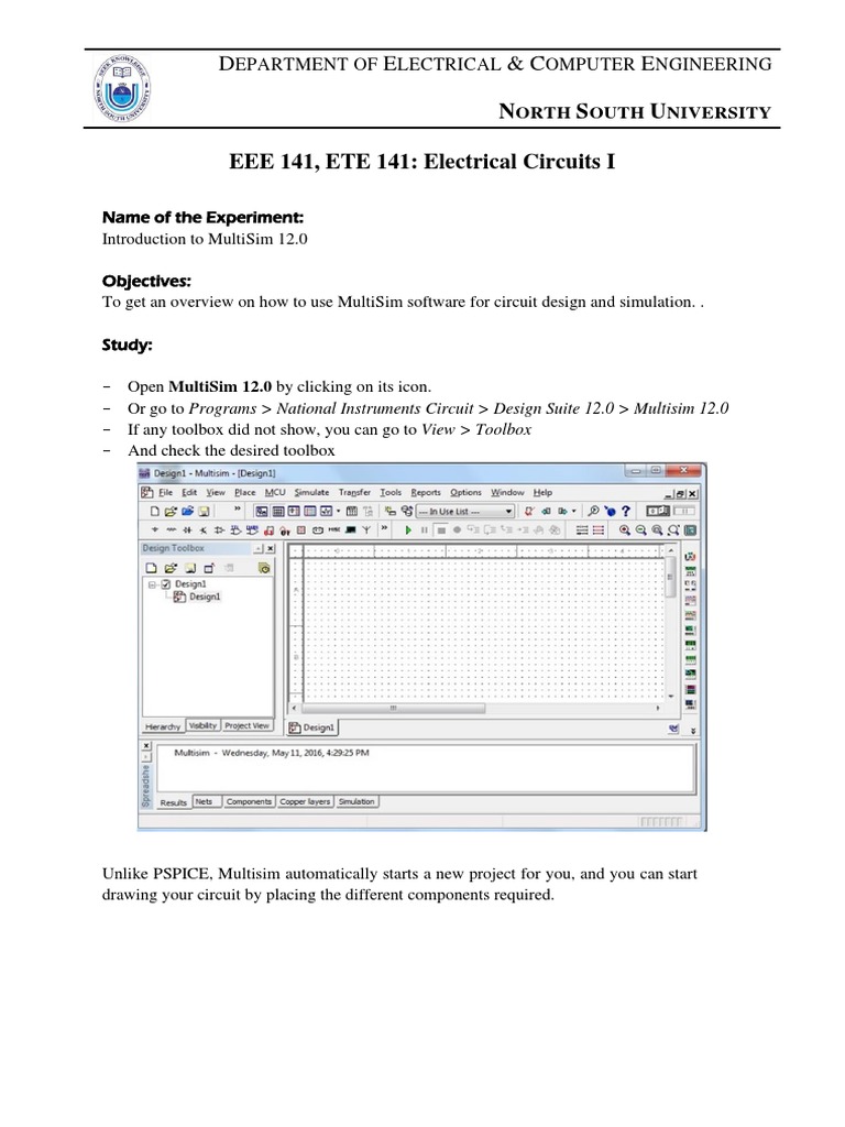 - Or go to Programs > National Instruments Circuit > Design Suite 12.0 > Multisim 12.0