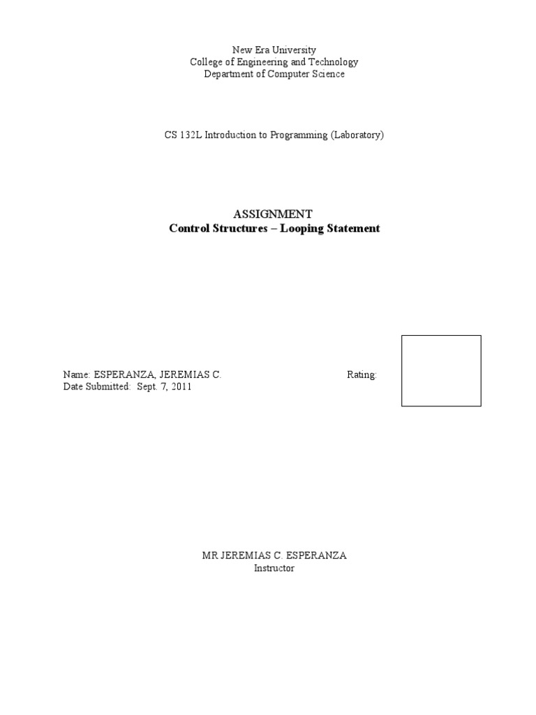 Name: ESPERANZA, JEREMIAS C. Date Submitted: Sept. 7, 2011