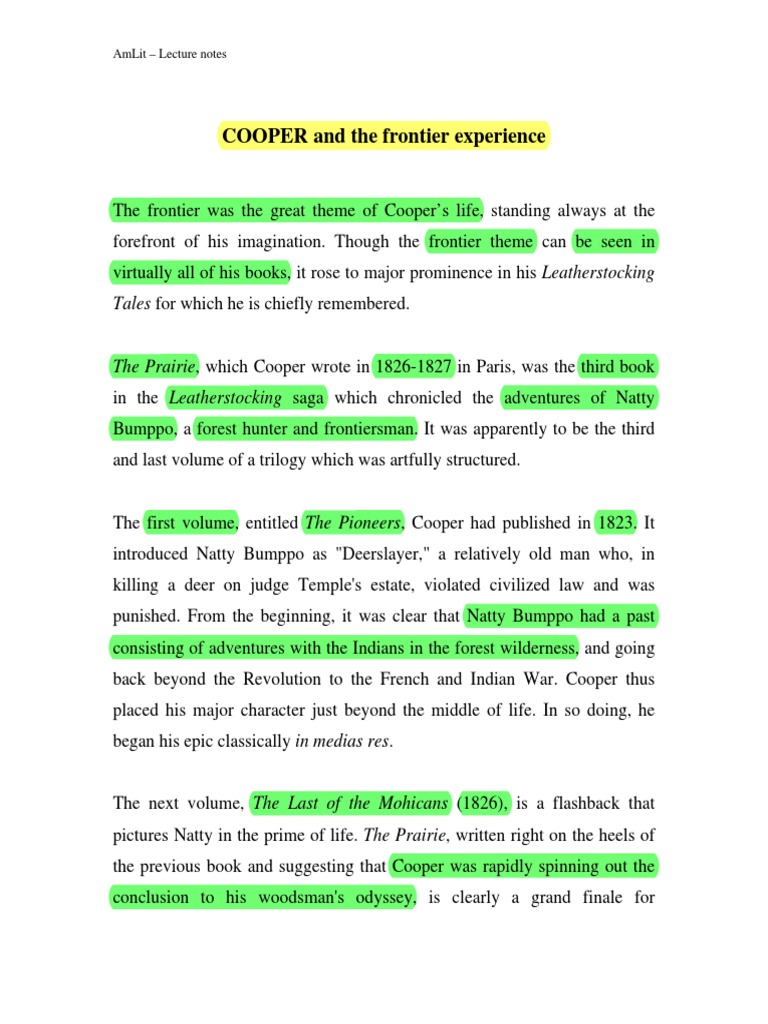 virtually all of his books, it rose to major prominence in his Leatherstocking