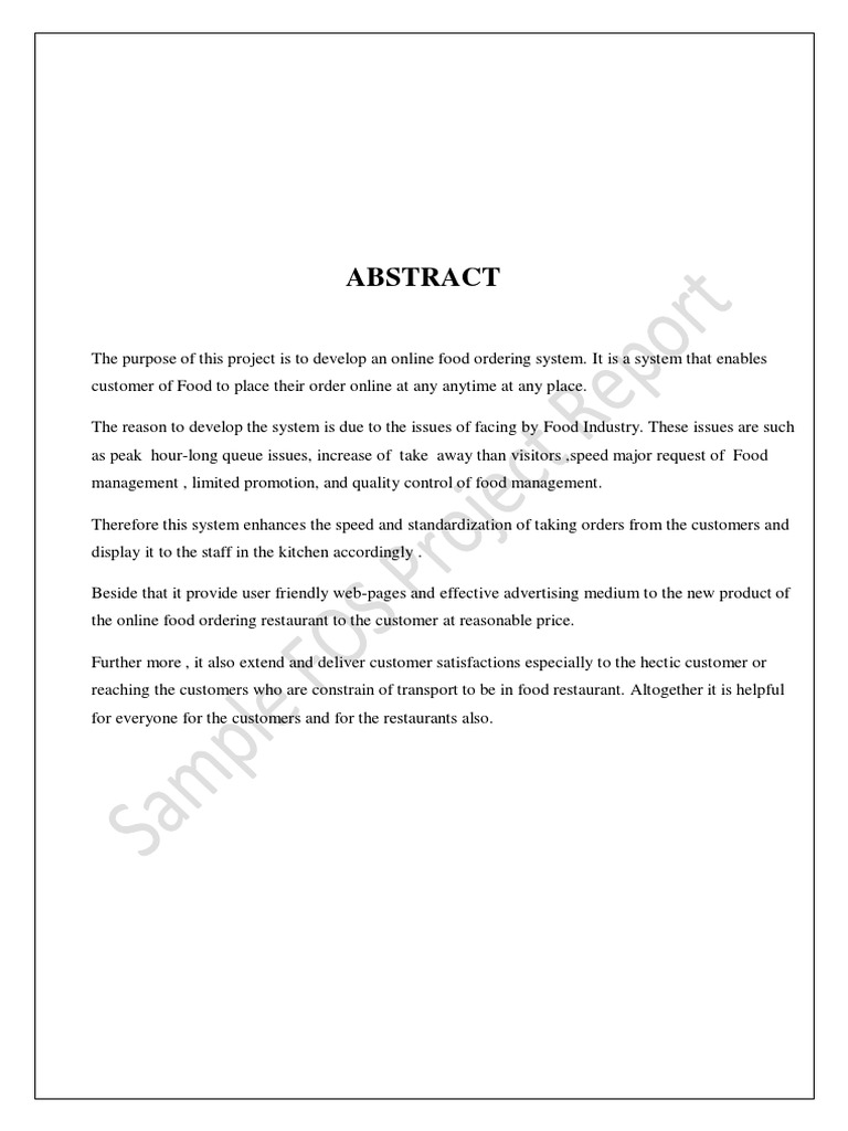 The purpose of this project is to develop an online food ordering system. It is a system that enables