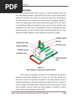AUTOMATED GUIDED VEHICLE An automated guided vehicle or automatic guided vehicle (AGV) is a mobile robot that follows markers or wires in the floor, or uses vision or lasers. They are most often used in industrial applications to move materials around a manufacturing facility or a warehouse Automated guided vehicles increase efficiency and reduce costs by helping to automate a manufacturing facility or warehouse. The AGV can tow objects behind them in trailers to which they can autonomously attach. The trailers can be used to move raw materials or finished product. The AGV can also store objects on a bed. The objects can be placed on a set of conveyor and then pushed off by reversing them. Some AGVs use fork lifts to lift objects for storage. AGVs are employed in nearly every industry, including, pulp, paper, metals, newspaper, and general manufacturing. Transporting materials such as food, linen or medicine in hospitals is also done. An AGV can also be called a laser guided vehicle (LGV) or self-guided vehicle (SGV). Lower cost versions of AGVs are often called Automated Guided Carts (AGCs) and are usually guided by magnetic tape. AGCs are available in a variety of models and can be used to move products on an assembly line, transport goods throughout a plant or warehouse, and deliver loads to and from stretch wrappers and roller conveyors. AGV applications are seemingly endless as capacities can range from just a few kgs to hundreds of tons. The Aim of the project is to design and fabricate such a AGV