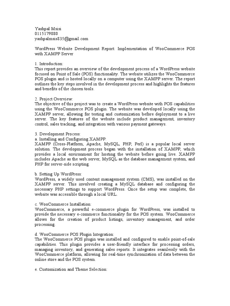 WordPress Website Development Report: Implementation of WooCommerce POS