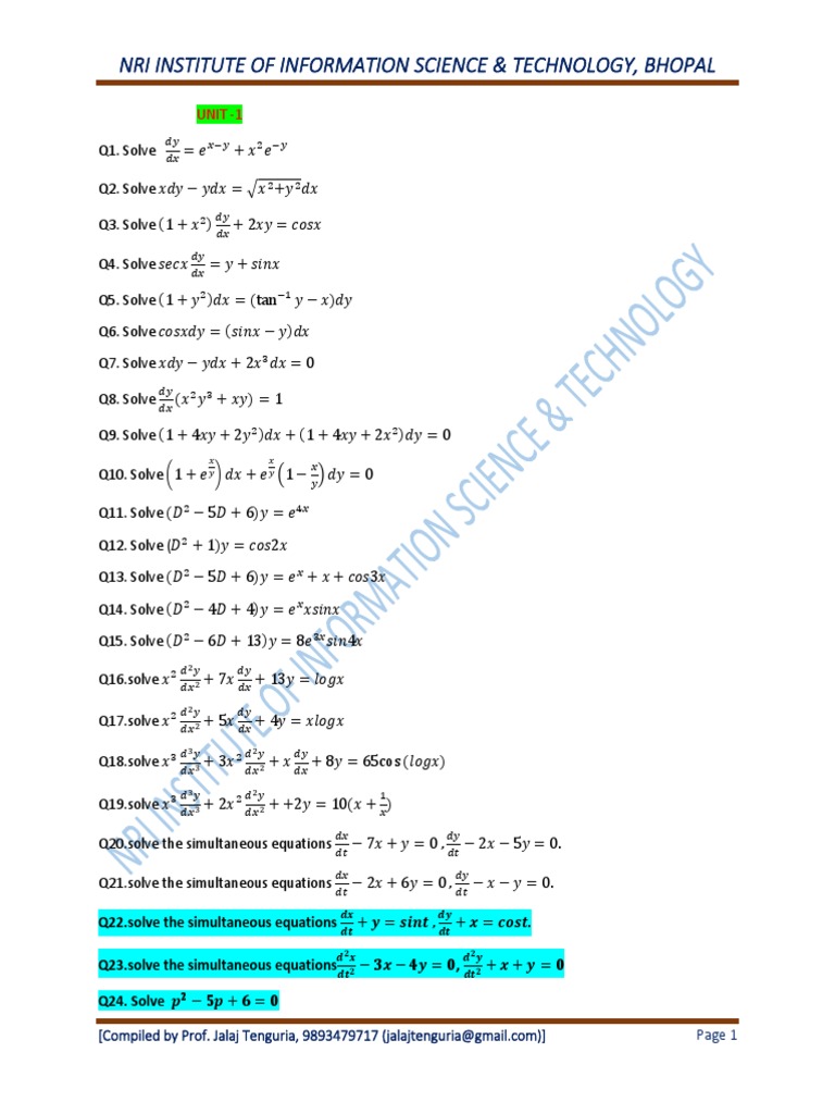 [Compiled by Prof. Jalaj Tenguria, 9893479717 (jalajtenguria@gmail.com)] Page 1