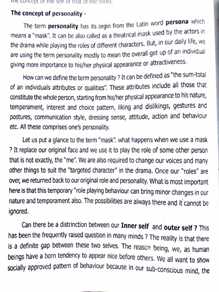an individual. Personality is never static, it is subject to change. It is the sum-total