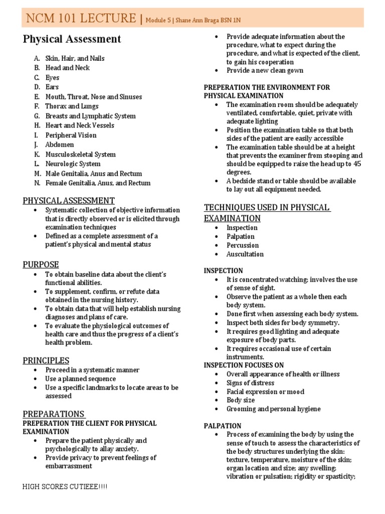 NCM 101 LECTURE | Module 5 | Shane Ann Braga BSN 1N