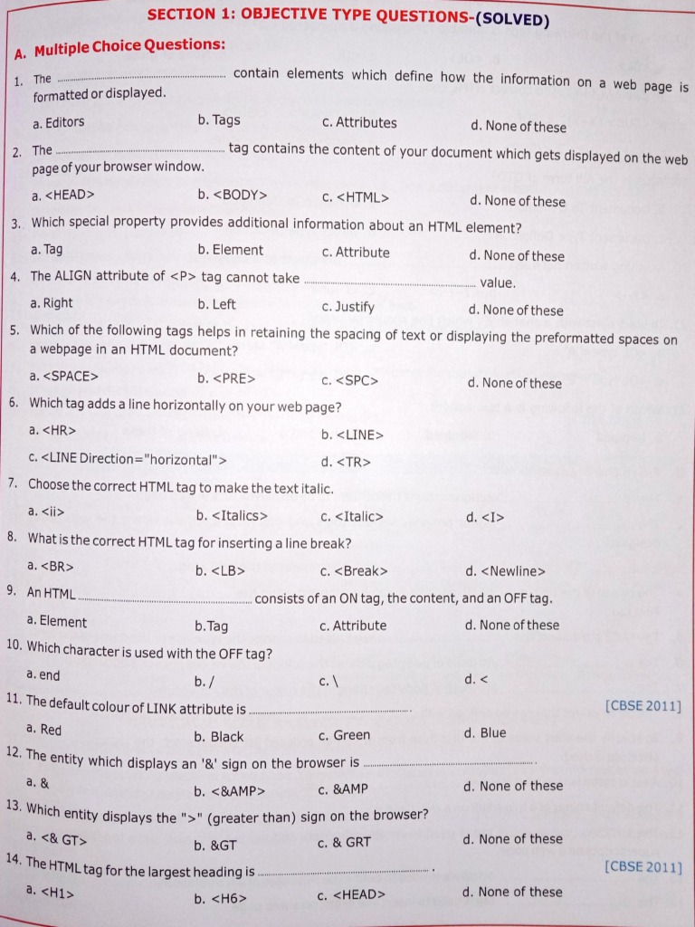 8. There must be only one tag in an HTML document. [CBSE 2012)