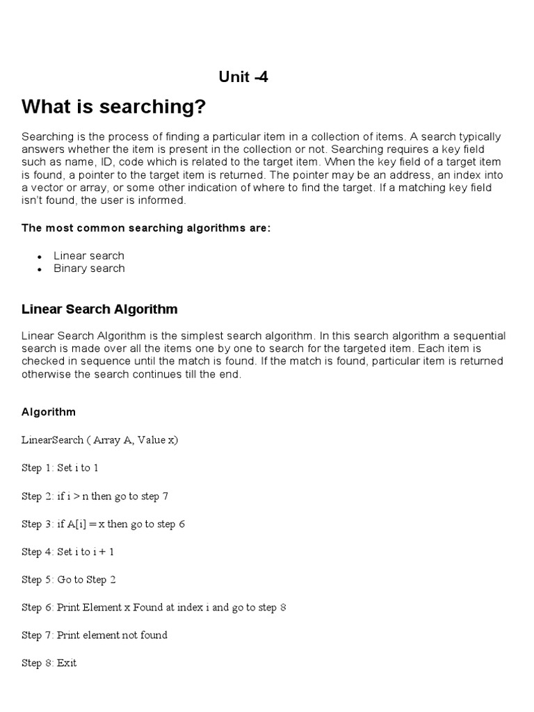 Searching is the process of finding a particular item in a collection of items. A search typically