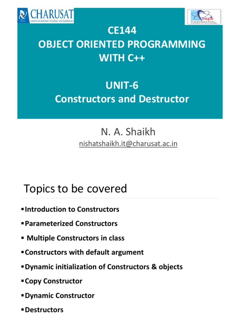 Unit 6: Constructor and Destructors Prepared By: Nishat Shaikh