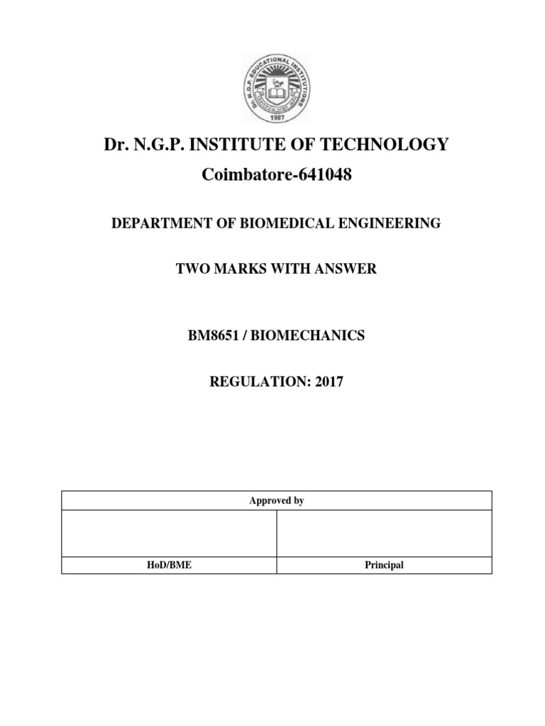 Question Bank - Two Marks With Answer BM8651/Biomechanics