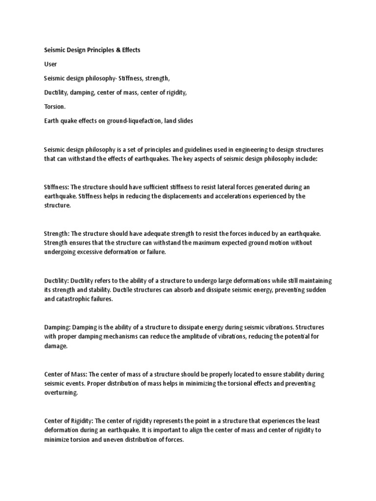 that can withstand the effects of earthquakes. The key aspects of seismic design philosophy include: