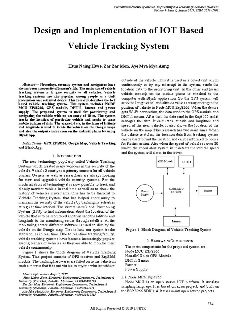 Figure 1 shows the block diagram of Vehicle Tracking Node MCU ESP8266
