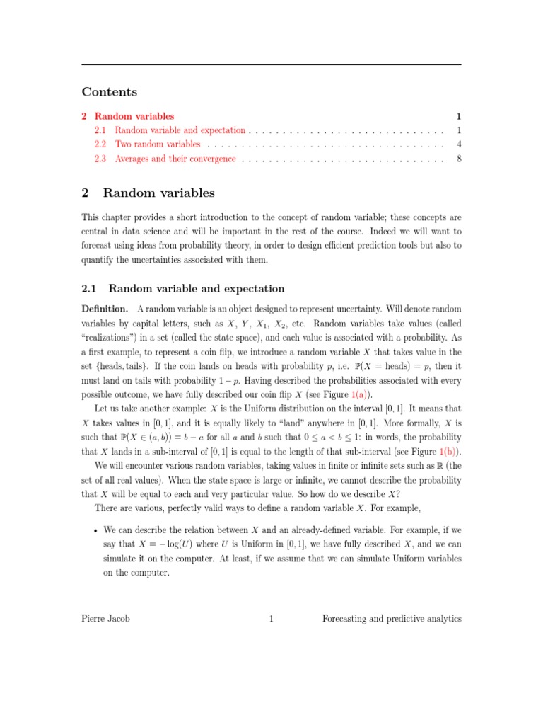 2.1 Random variable and expectation . . . . . . . . . . . . . . . . . . . . . . . . . . . . . 1