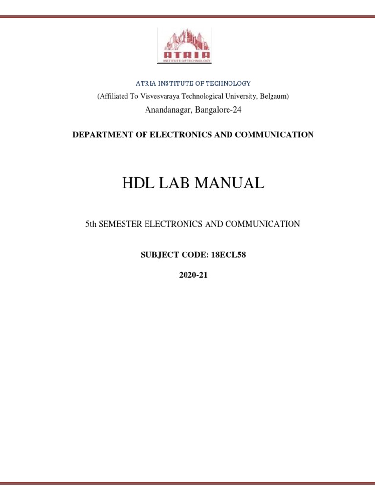 The HDL Laboratory Manual pertaining V semester ECE has been prepared as per VTU