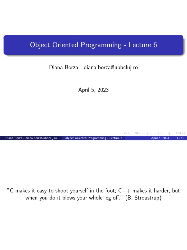 Diana Borza - diana.borza@ubbcluj.ro Object Oriented Programming - Lecture 6 April 5, 2023 1 / 42