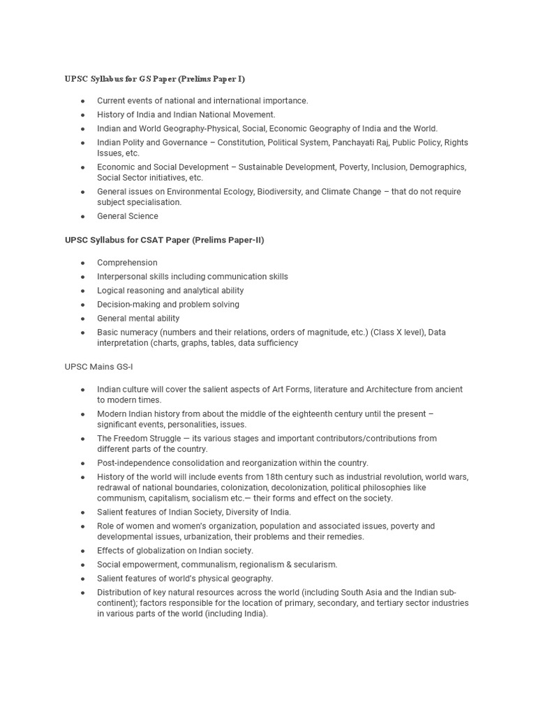 UPSC Syllabus for GS Paper (Prelims Paper I)