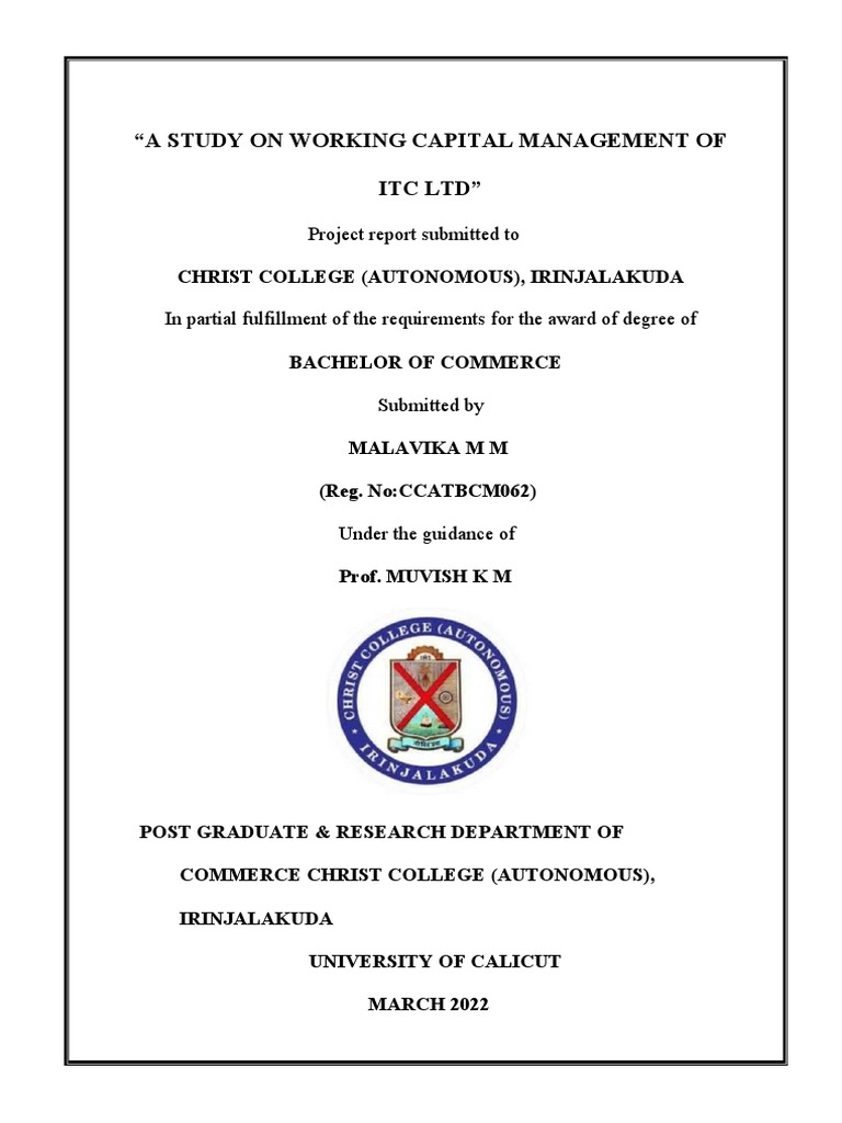 The study was undertaken mainly to analyse the working capital management of ITC Ltd. The