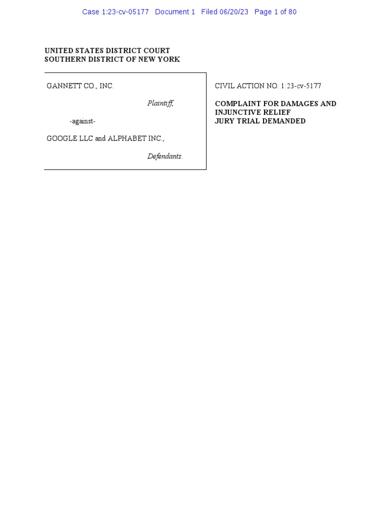 1. Plaintiff Gannett Co., Inc. is a digitally focused media and marketing solutions