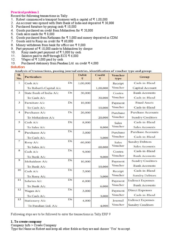 Following steps are to be followed to enter the transactions in Tally.ERP 9