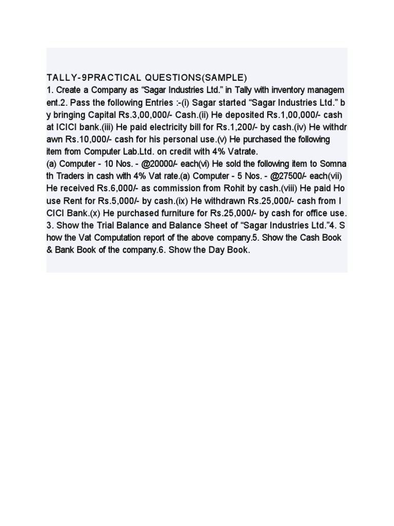 TALLY-9PRACTICAL QUESTIONS(SAMPLE)