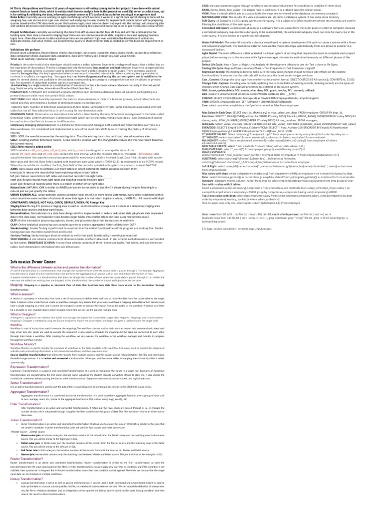 Hi This is thirupathirao and I have 4.11 years of experience in etl testing coming to the last project I have done with united RANK, Dense_Rank, Row_nuber: it is assigns rank to each record in a table it skips the similar values