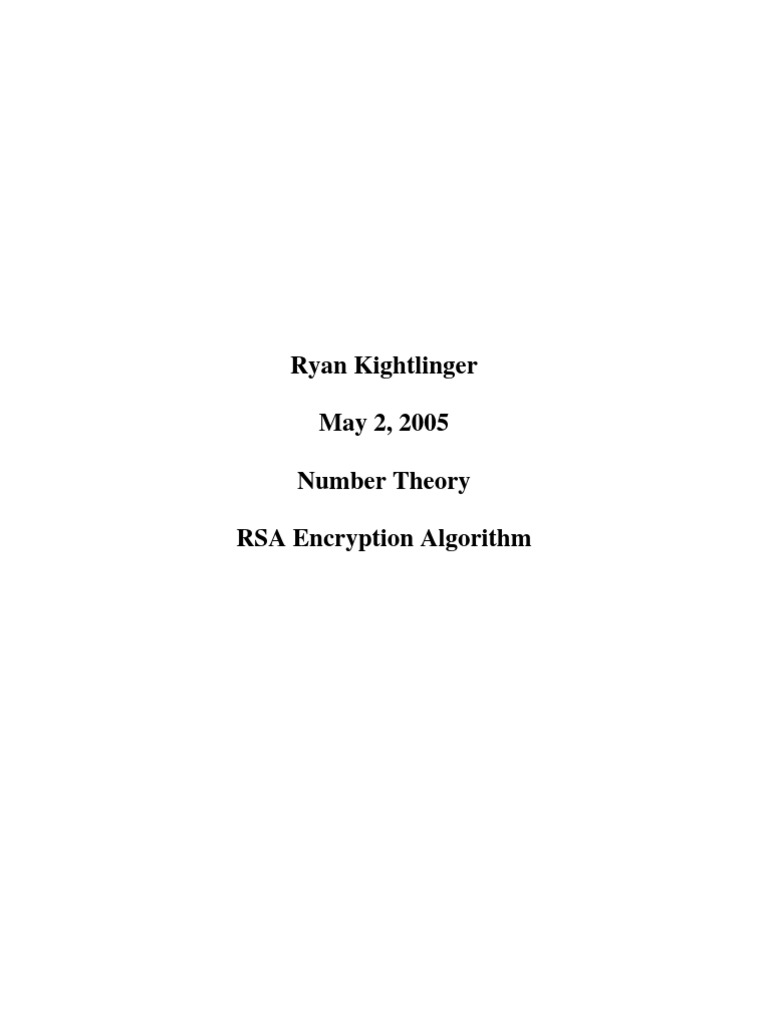 Ryan Kightlinger May 2, 2005 Number Theory RSA Encryption Algorithm
