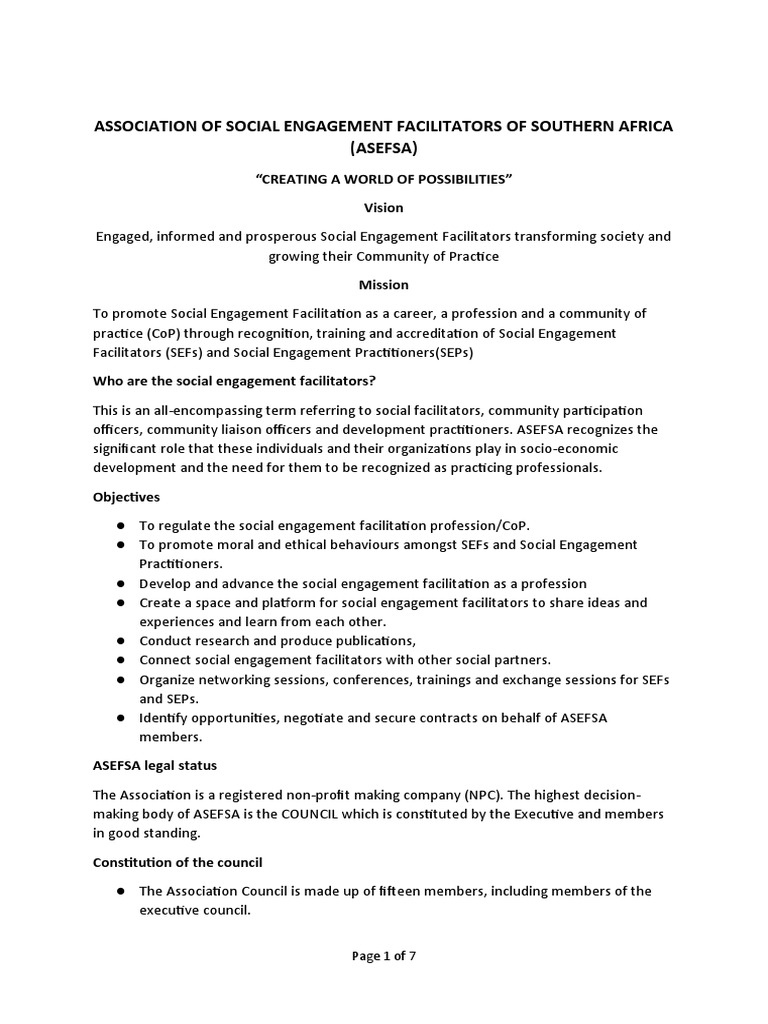 ASSOCIATION OF SOCIAL ENGAGEMENT FACILITATORS OF SOUTHERN AFRICA