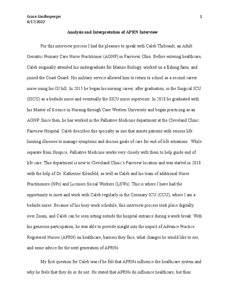YouTube. (2023). Interview with an APRN. YouTube. Retrieved June 17, 2023, from