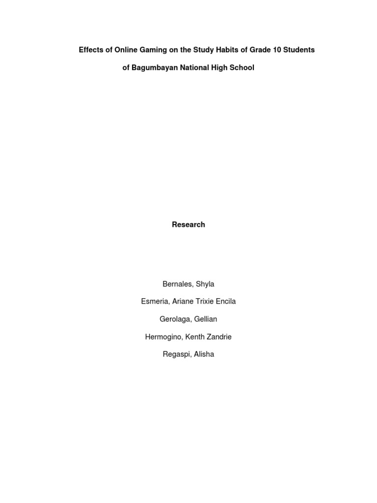 Effects of Online Gaming on the Study Habits of Grade 10 Students
