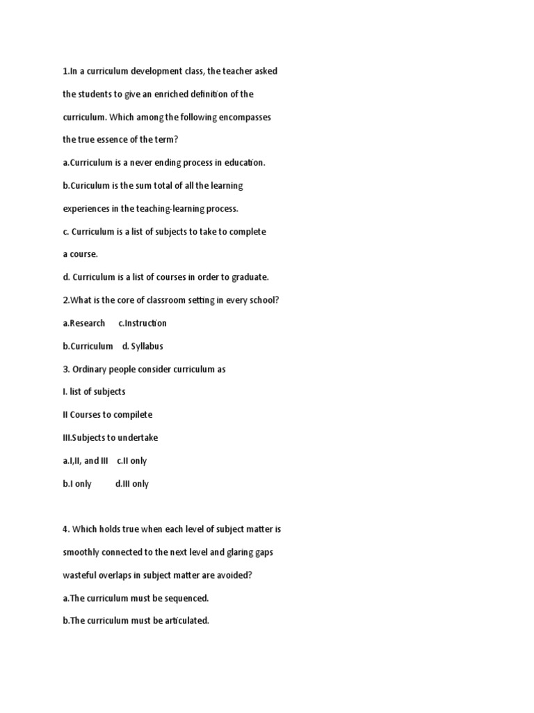11. Suppose that in developing a curriculum, your intention is to put a lot of importance in developing
