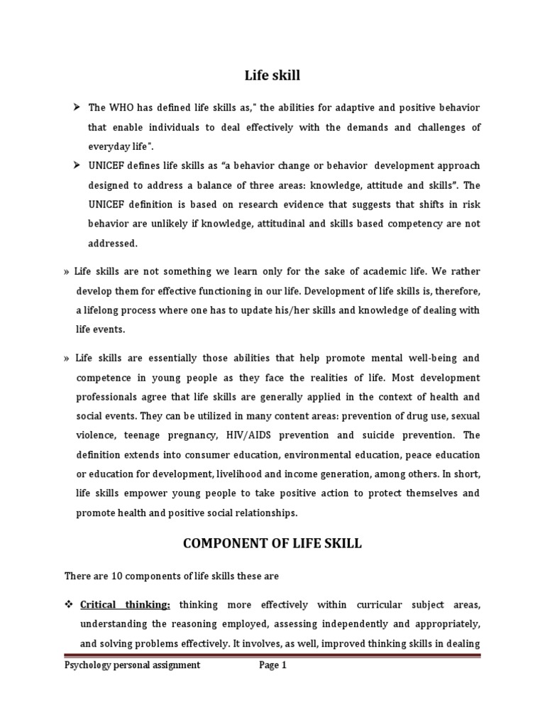 UNICEF defines life skills as “a behavior change or behavior development approach