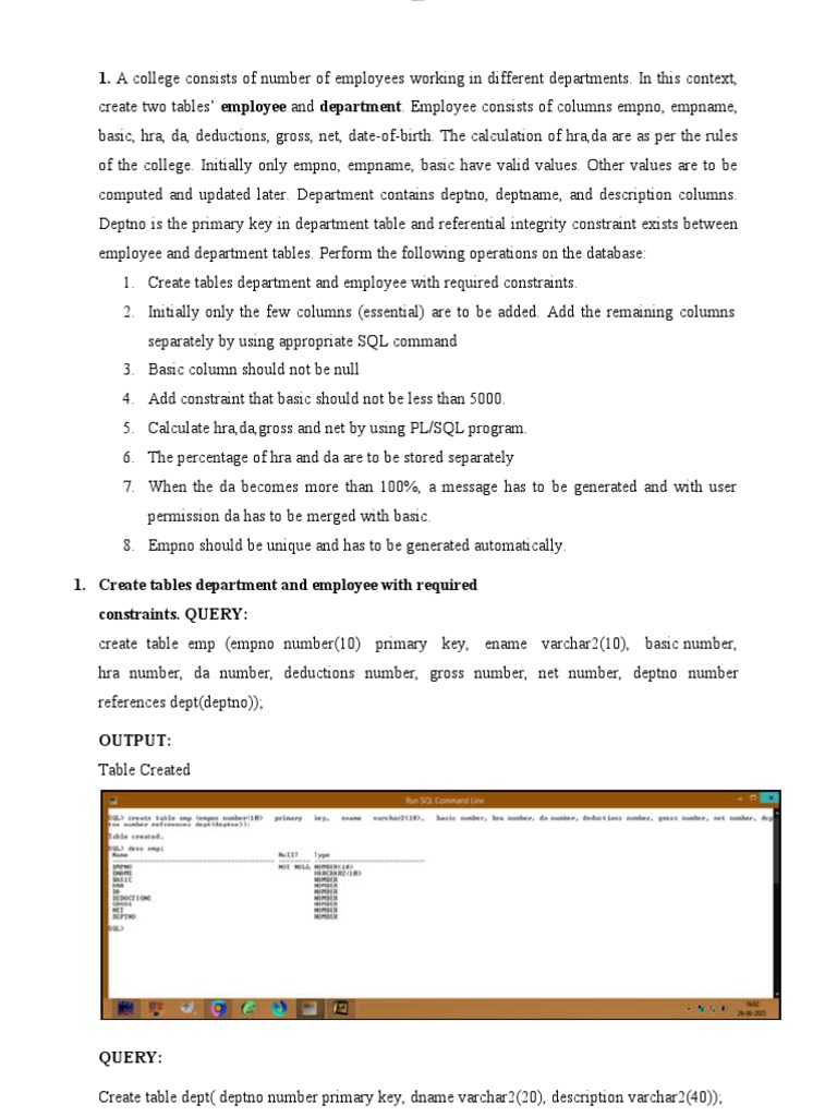 of the college. Initially only empno, empname, basic have valid values. Other values are to be
