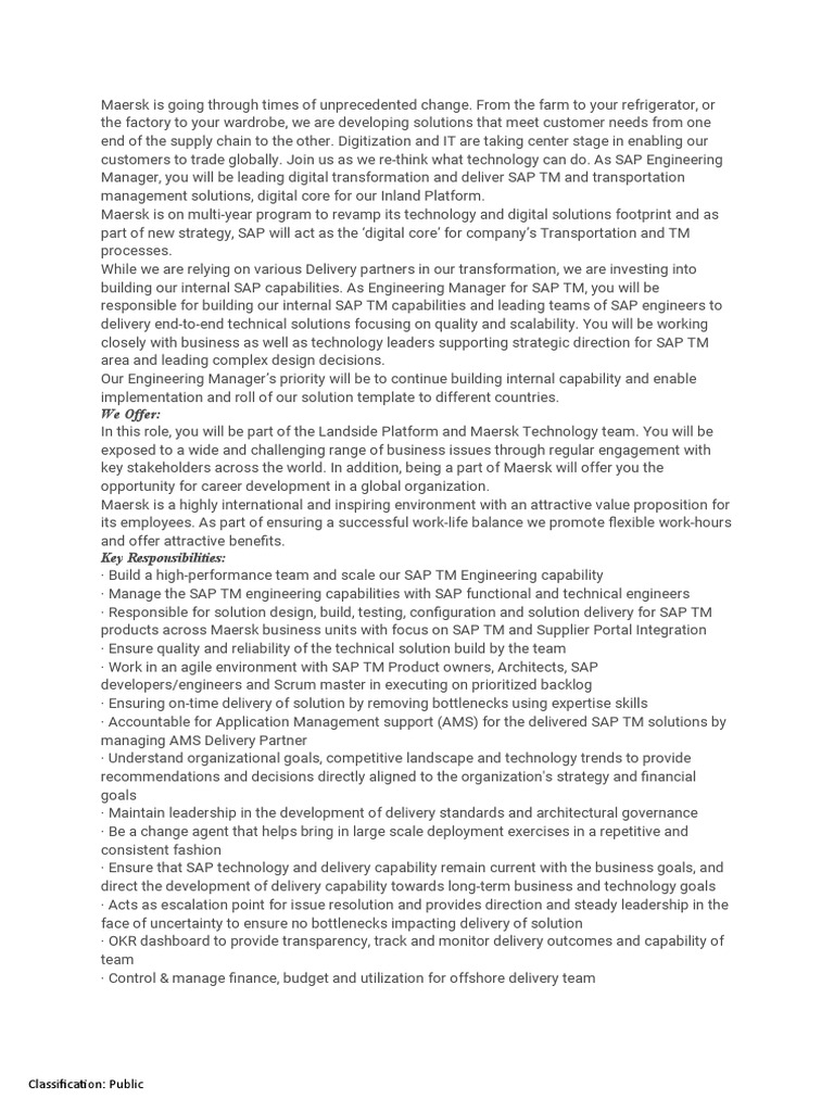 products across Maersk business units with focus on SAP TM and Supplier Portal Integration